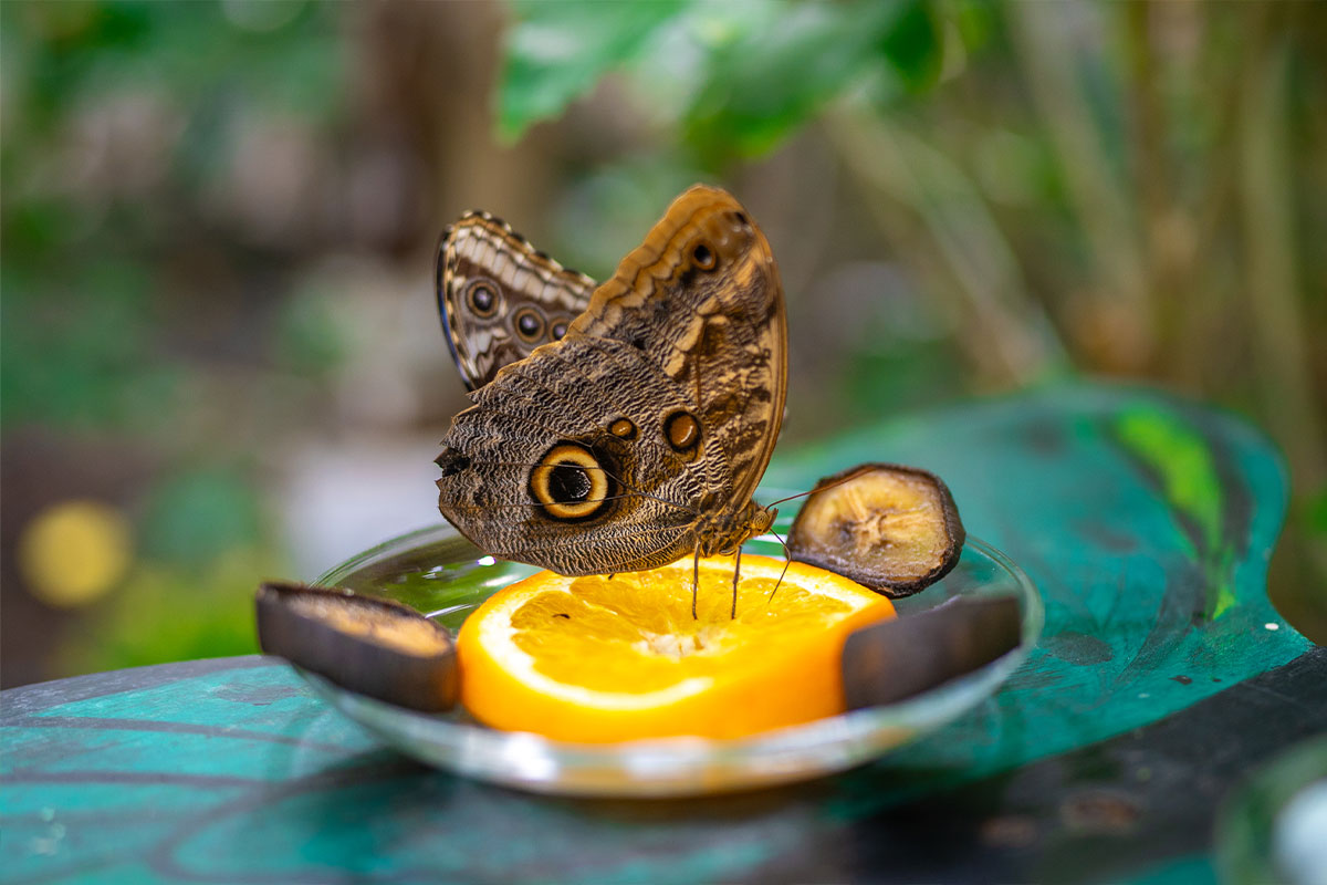 Immersa tra i colori e i profumi della vegetazione mediterranea, si trova la Casa delle Farfalle, fulcro e attrazione principale del parco. Questa è l’unica biosfera della Sardegna, in cui volano e si riproducono diverse centinaia di farfalle tropicali.