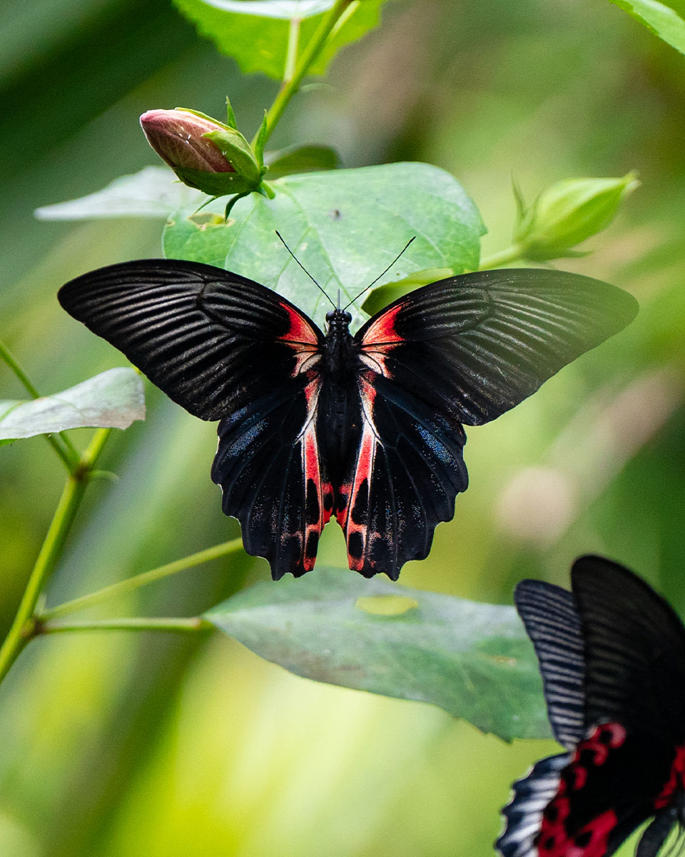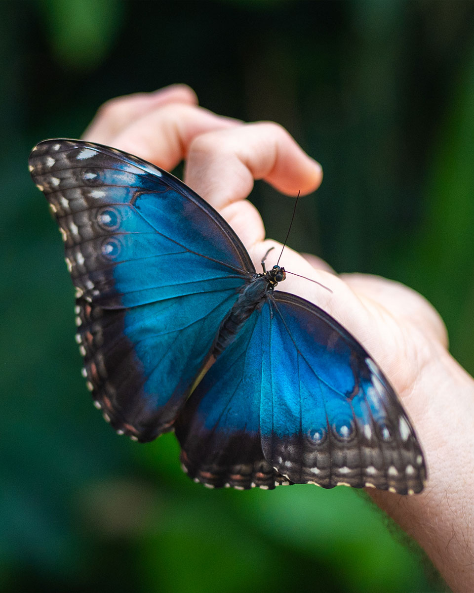 The entrance to the biosphere is preceded by a tour where visitors can learn about the unique aspects of butterflies, including information on their life cycles and curiosities about the natural meaning of their vibrant colors. The introductory tour continues with an exhibition entitled “Six-Legged Jewels,” an unusual display of some of the planet’s most unique insects (beetles and lepidoptera), distinguished by their size, shape, colors, and patterns.