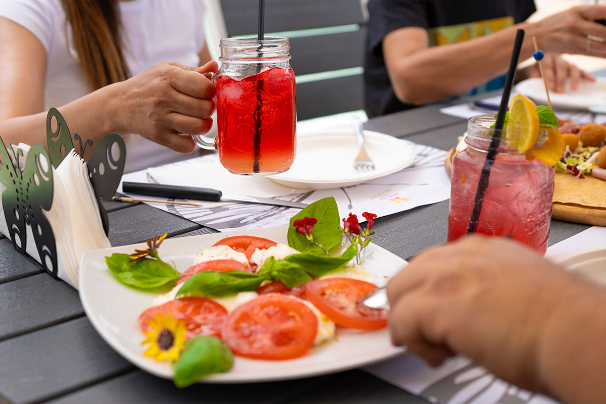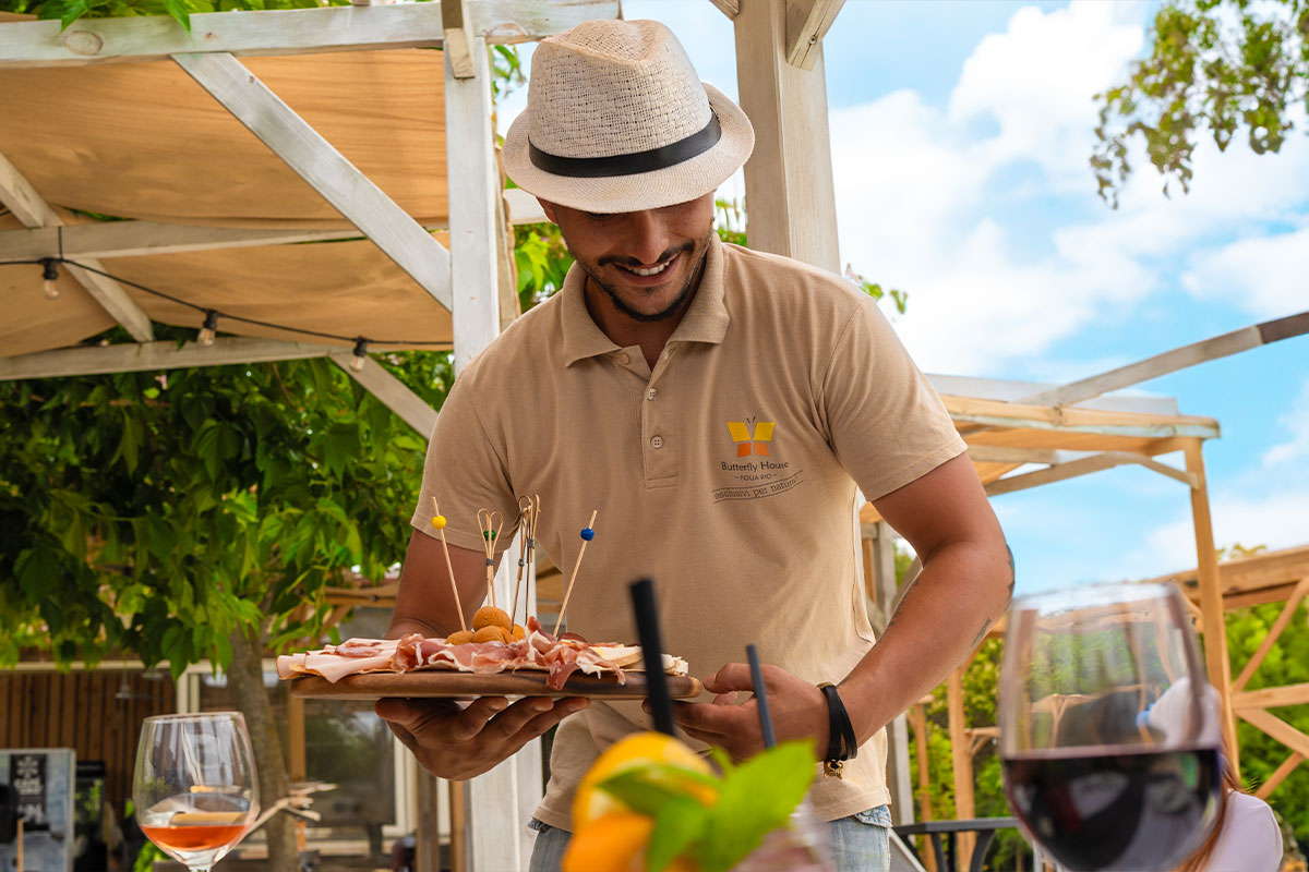 The Butterfly House refreshment area is an integral part of the park. In the shade of the gazebos and majestic mulberry trees, you can sample authentic produce and sip a refreshing drink. For those wishing to have lunch, you can choose from a selection of freshly prepared meals. Alternatively, you can enjoy a packed lunch in the equipped picnic area.